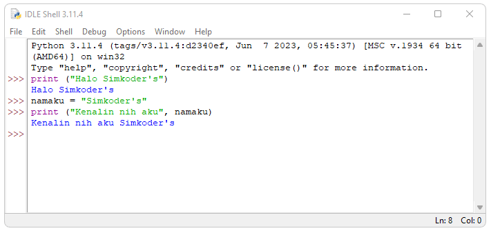 Simkoder's, setelah selesai menginstall Python pada Windows, sebaiknya kalian langsung melakukan testing / uji coba bahasa pemrograman Python. Testing yang akan kita lakukan ini terdiri dari 2 tipe yaitu :